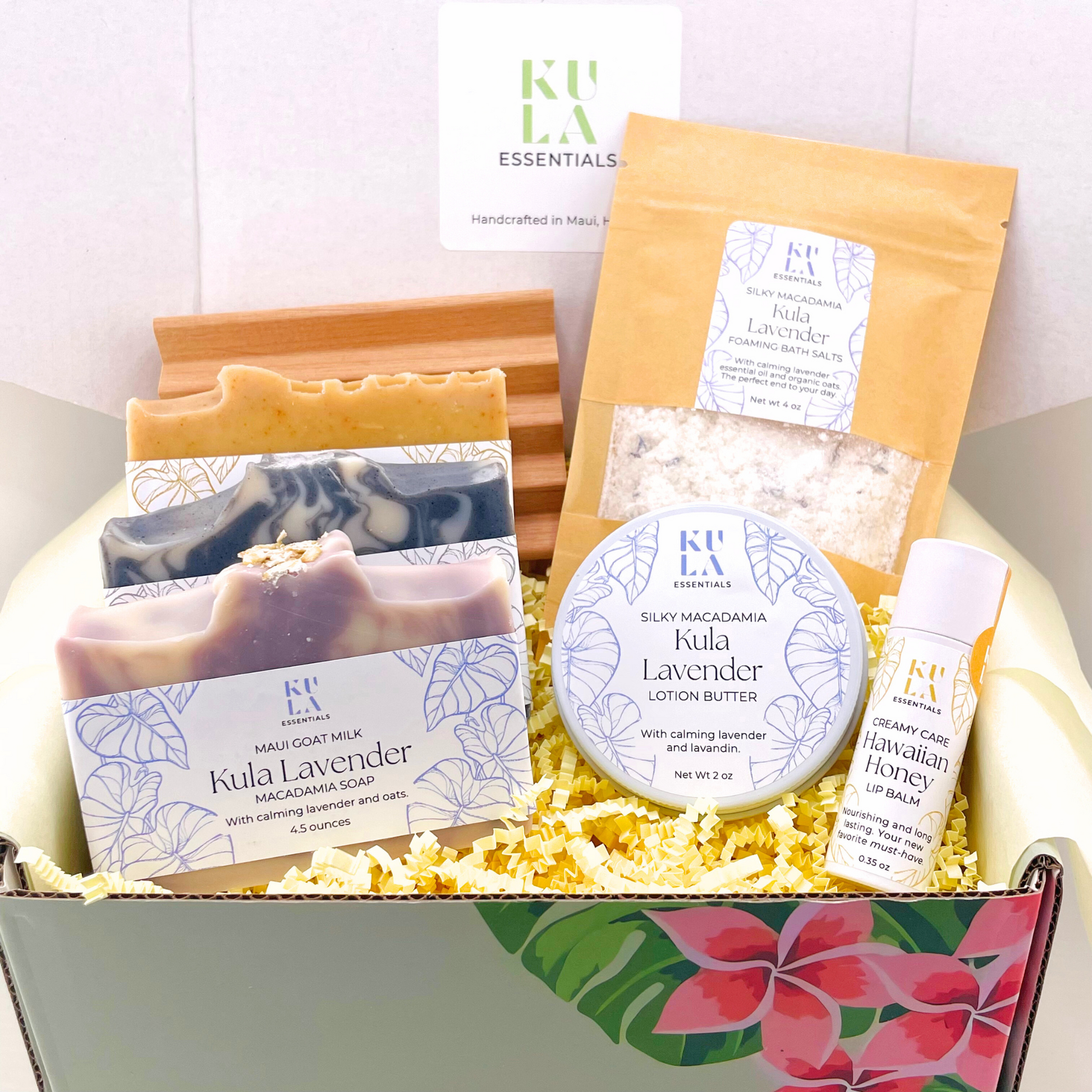 Give the gift of Aloha with our beautiful deluxe bath set. Loved by most skin types especially dry skin. Free of synthetic fragrance, color, preservatives, sulfates, parabens, etc.