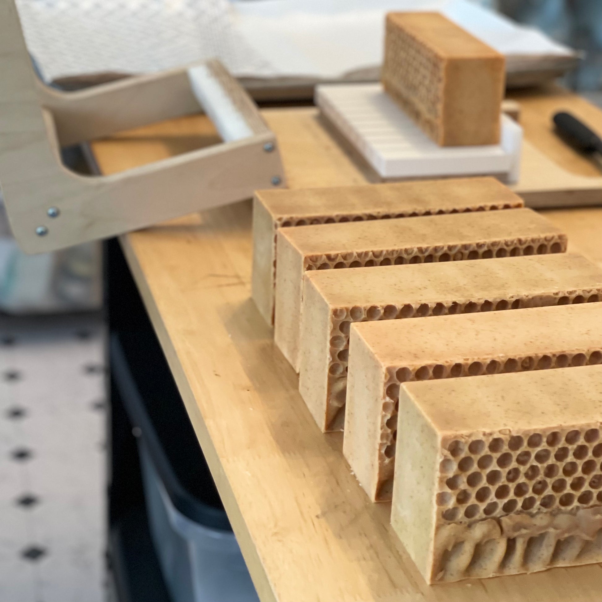 Color: Golden skin brightening turmeric. Honeycomb pattern on top.